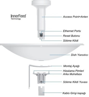 "PowerBeam NBE-300", Ubiquiti markasına özgü "InnerFeed™"(DISH anten ortasına konumlandırılmış Dahili antenli Access point mantığı) tasarımı sayesinde anten ile Erişim noktası (Access Point) arasında bir kablo bağlantısına ihtiyaç duymadan çalışabiliyor. Bu tasarım anten ile Erişim noktasını kablo ile bağladığınız geleneksel montaj şeklinde yaşanan verimlilik kaybını ortadan kaldırır. NanoBeam hızlı işlemcisi, yenilikçi tasarımı ile çok yönlü kullanım alanı sağlayan fiyat performans ürünüdür.
