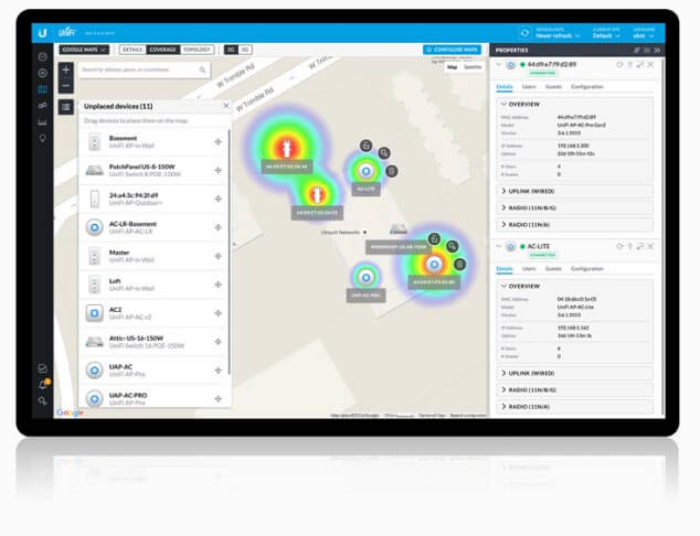 UBNT UniFI Kontrol yazılımı ile , yerel ağınızda bulunan tüm cihazlarınızı tek bir ekranda yönetebilmenizin yanısıra dünyanın herhangi bir yerindeki cihazlarınızı da merkezinize bağlayıp yönetebilirsiniz, yönettiğiniz cihazları bulundukları konuma veya hizmet şekline göre gruplandırabilir, Ölçeklendirilebilir harita ve Google Maps entegrasyonu sayesinde gerçek zamanlı kapsama alanı haritanızı çıkarabilir, cihazlarınızın Grup olarak veya ayrı ayrı olacak şekilde hizmet istatistiklerini takip edebilir, cihazlarınız üzerindeki kullanıcıları yönetebilir veya gruplandırabilirsiniz. UniFI ailesi  4 adet Sanal yayın (Virtual SSID) oluşturma imkanı sunmaktadır. oluşturulan bu yayınlardaki VLAN desteği sayesinde tek bir cihaz üzerinden 4 farklı ağ yayını yapılabilir veya güvenlik duvarı, VLAN gibi yapılandırmalar ile uğraşmadan oluşturulan sanal kablosuz yayınları misafir ağı olarak ayarlayabilirsiniz, oluşturulan misafir ağının mevcut yerel ağınıza ve aynı misafir ağını kullanan diğer cihazların arasındaki erişimi kısıtlayabilir ve bant genişliği sınırlaması uygulayabilirsiniz. yazılım içerisinde ücretsiz olarak sunulan Captive portal yazılımı ile Paypal ödeme altyapısını kullanarak sunduğunuz kablosuz internet hizmetini ücretlendirebilirsiniz.